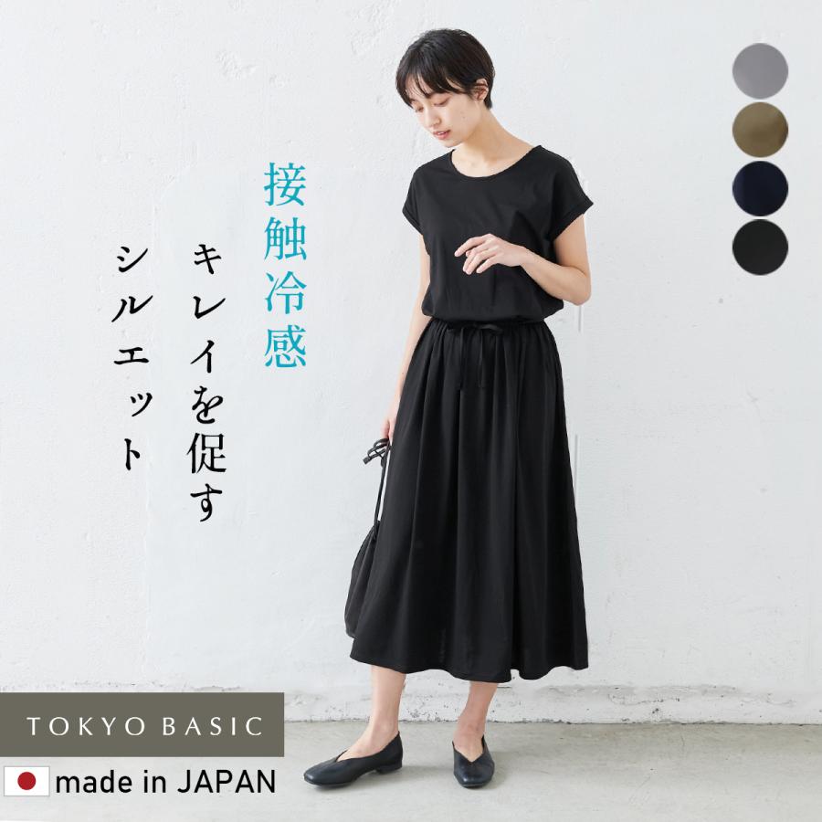 ロングワンピース 春 夏 半袖 強撚糸コットン100 美シルエット ワンピース 日本製 so 1506 02 tokyobasic 通販 yahoo ショッピング