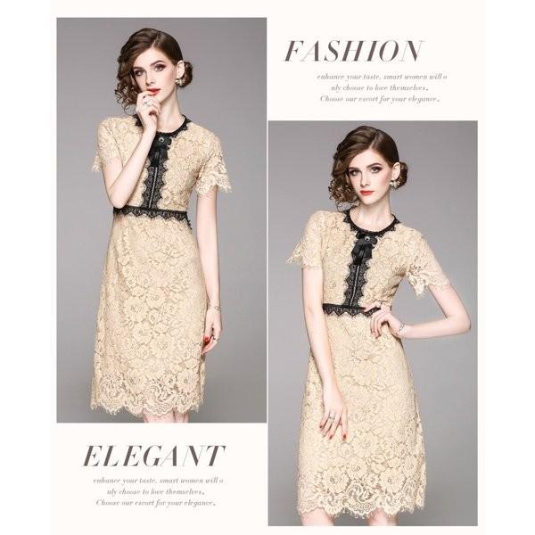 総レースワンピース総レースパーティードレス半袖aライン総レースドレスミディアム丈無地ドレススリムワンピース結婚式ひざ下丈ミディアム丈