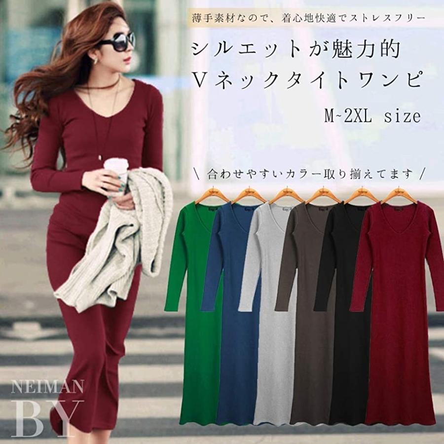 きれいめ タイトワンピース vネック ミモレ 丈 無地 ニット リブ ニットワンピース 長袖 緑 c162 grl グリーン l ホリックワークショップ 通販 paypayモール