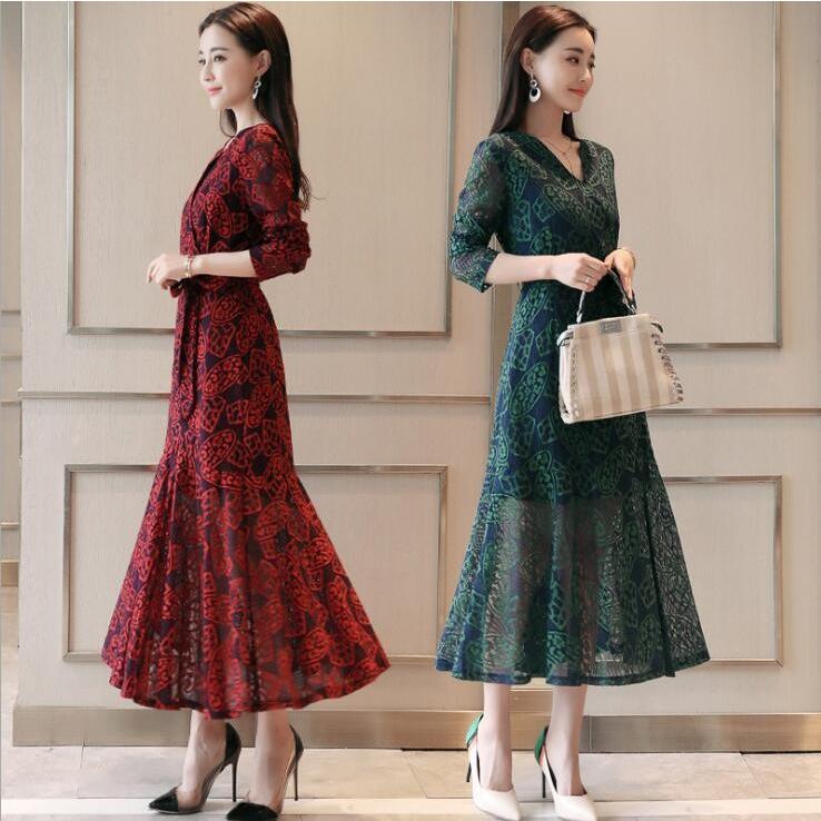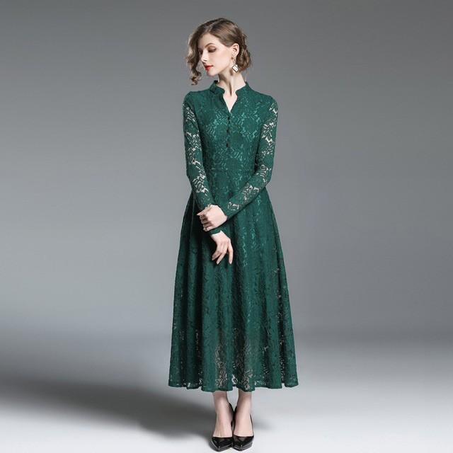お得 ロングワンピ ワンピース ドレス エレガント レース 緑