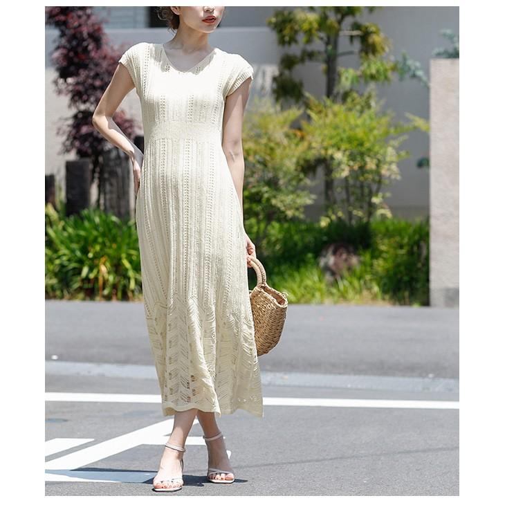 楽天市場 透かし編み ワンピース レディース ロング インナー付 キャミワンピ付 vネック サマーニット ニットワンピ 大人 メール便 2021春夏 m l lgww at3092 即納 予約 6月15日入荷予定順次発送 送料無料 圧縮発送 メ込 la gemme ラジエム