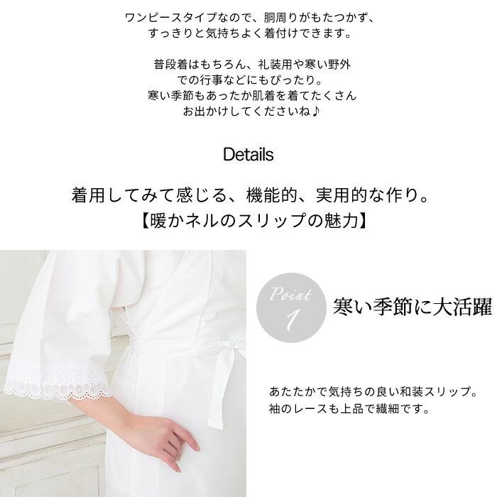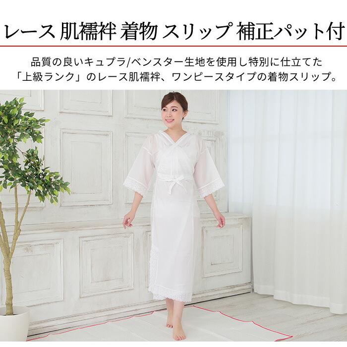 ゆうパケットで送料無料 肌襦袢 ワンピース 日本製 着物スリップ 和装肌着レース付き 肌襦袢 下着 裾よけ ワンピース型 s m l llサイズ 和 なでしこ