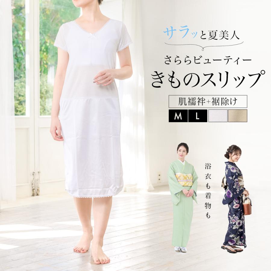 着物ひととき 肌襦袢 ワンピース 女性用 肌着 着物スリップ 裾よけ 白 和装下着