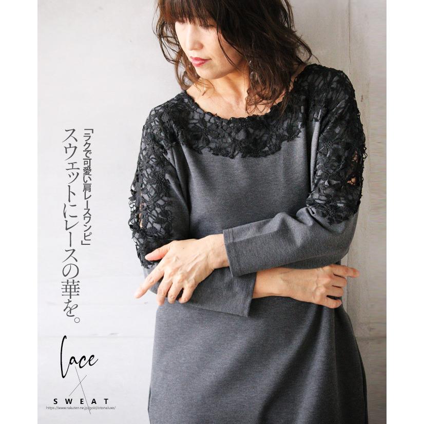ワンピース 大きいサイズ 肩レース切替ワンピース 透け素材