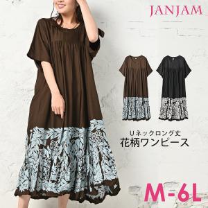 胸元レースが印象的 花柄切替ワンピース 大きいサイズレディースファッション専門店 ミニョン