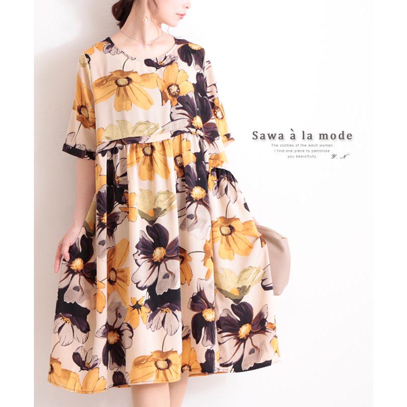 大きいサイズ レディース 胸下切替バルーンワンピース gold727