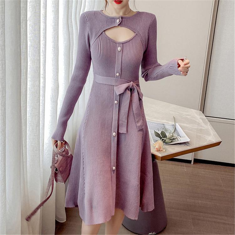 ロングワンピース ワンピ ニット 韓国 きれいめ コーデ 冬 秋冬 秋 40代 30代 カジュアル ゆったり 体型カバー 無地 きれいめ 通勤 30代 ニットワンピース 膝丈ワンピース 冬 ワンピの里