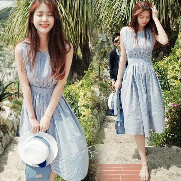 ワンピース レディース 夏 マキシワンピース ボーダー ノースリーブ ワンピース 韓国風 膝丈 ロング丈ワンピース オシャレ 上品 旅行 y280166 fairyhouse 通販 yahoo ショッピング