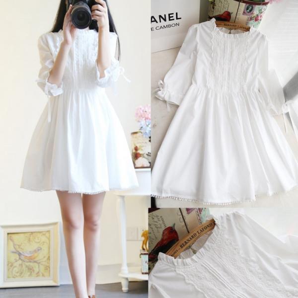 大きいサイズのレディース 夏新作大きいサイズ ワンピース 膝丈 ワンピース 夏 膝丈ワンピース 膝上 フレアワンピース 膝丈 丸襟 刺繍 白ワンピース 七分袖 レディース 夏 ゆったりワンピース 体型カバー ワンピース 大人かわいい服 ガーリーワンピース ホワイト p6832