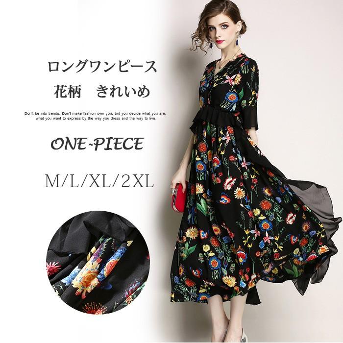 マキシワンピース 夏 リゾートワンピ シフォンワンピース 大人 可愛い 花柄 ワンピース マキシ vネック ロングワンピース リゾートワンピ