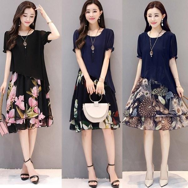母の日 シフォンドレス 花柄ワンピース ロングドレス マキシワンピ レディースワンピース 3色ドレス ワンピ 半袖 大きいサイズ ひざ下 au pay マーケット