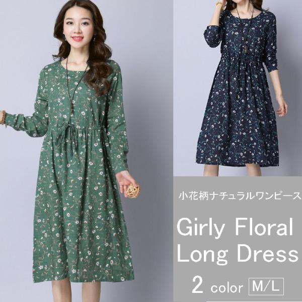 ワンピース 春 きれいめ 定番 花柄 ラウンドネック 大きいサイズ 涼しい 長袖 ロング丈 ロングスリーブ 大学生 高校生 大きめ ブラック グリーン ゆったり フェミニン 大人可愛い backyard family 雑貨タウン