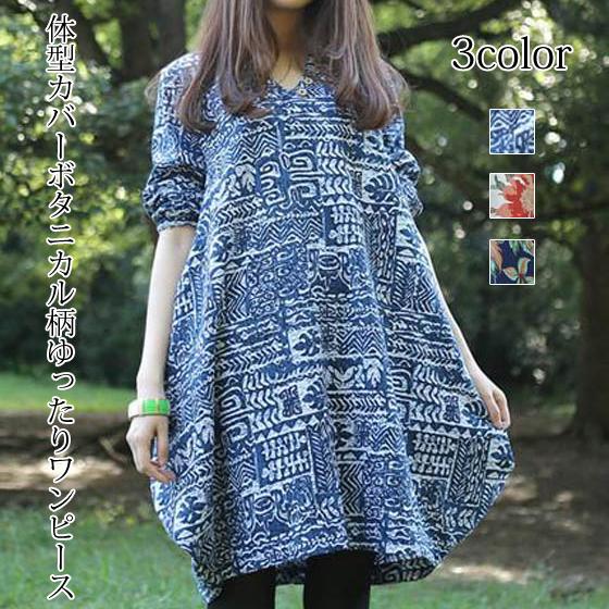サユサユ aライン ワンピース 花柄 ゆったり 綿麻 半袖 長袖