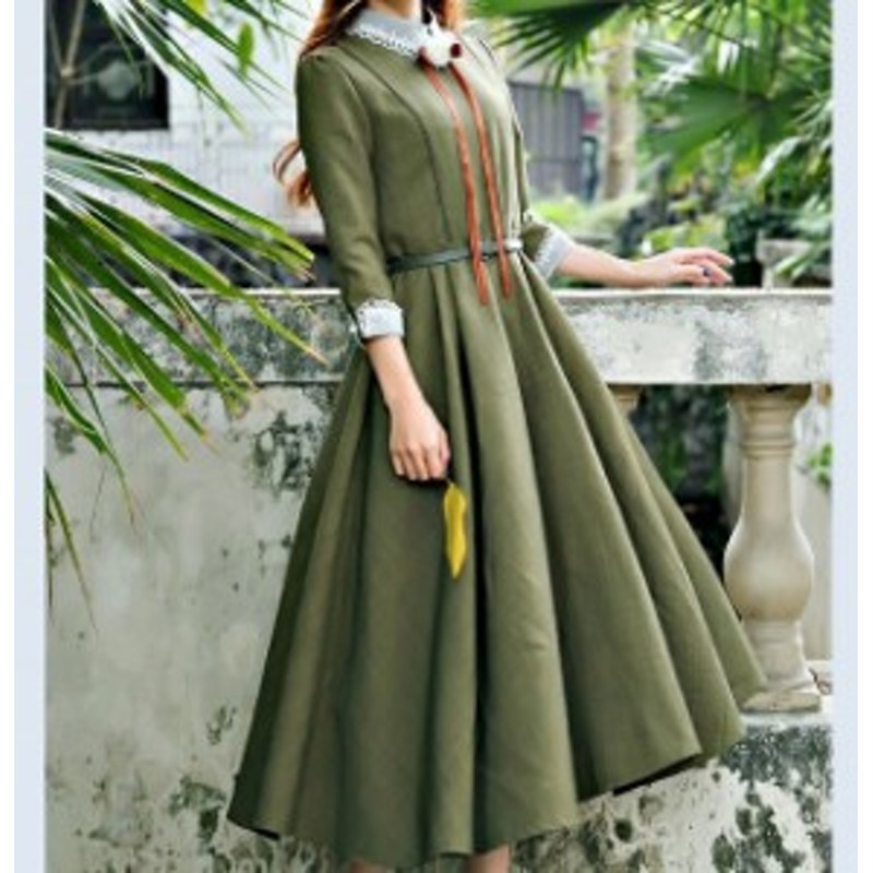ロングワンピース 秋冬 森ガール ワンピース レトロ ワンピース 英国風 英国風ワンピース 秋冬 襟付き ワンピース レース 無地 ロング丈 au pay マーケット