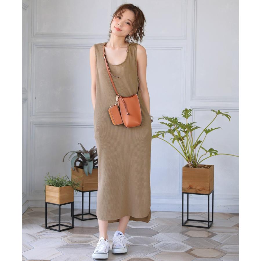 ワンピース ワッフルノースリーブワンピース レディース カットソー ロング丈 タンクワンピ 華奢見え donoban dth003op630 donoban ドノバン 通販 yahoo ショッピング