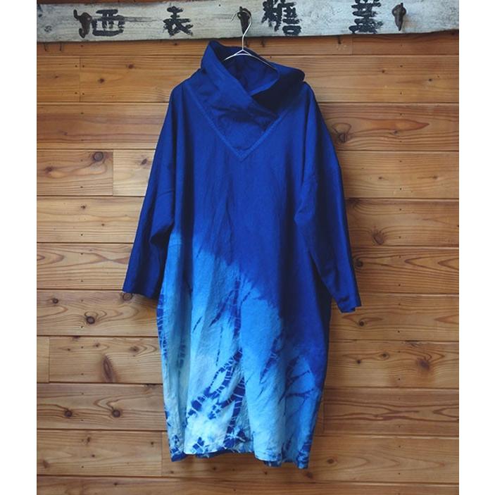 藍染の絞り 手染めの綿 グラデーションが映えるチュニック ワンピース sa1pic 2 八ヶ岳スタイル 通販 yahoo ショッピング