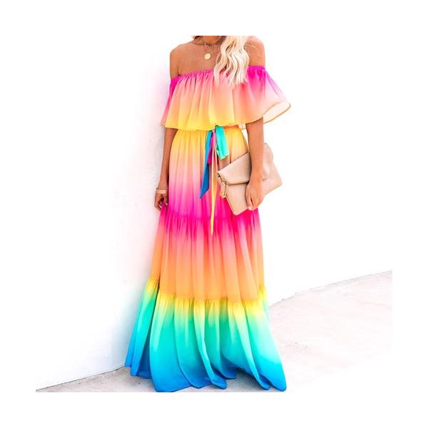 ピンク 虹色 カラフル ボーダー オフショルダー ダボ ルームウェア オーバーサイズ ゆったり ワンピース ラフ 半袖 ポンチョ フリル tシャツ カジュアル スニーカー パジャマ loveysmileshop powered by base