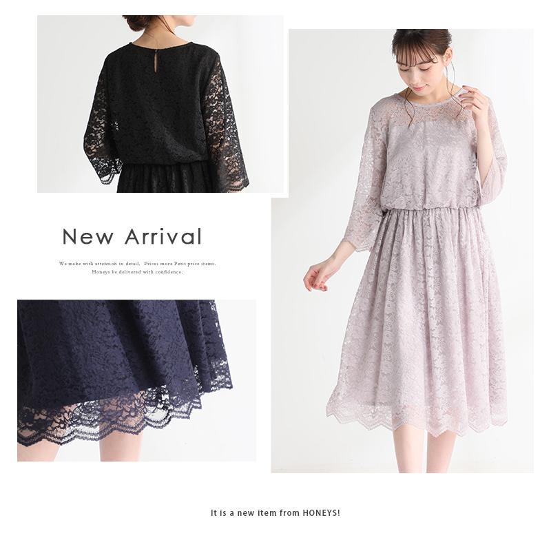 ワンピース 膝丈 七分袖 レース パーティー お呼ばれ レディース フレア honeys ハニーズ 総レースワンピース web限定llサイズ有 au pay マーケット