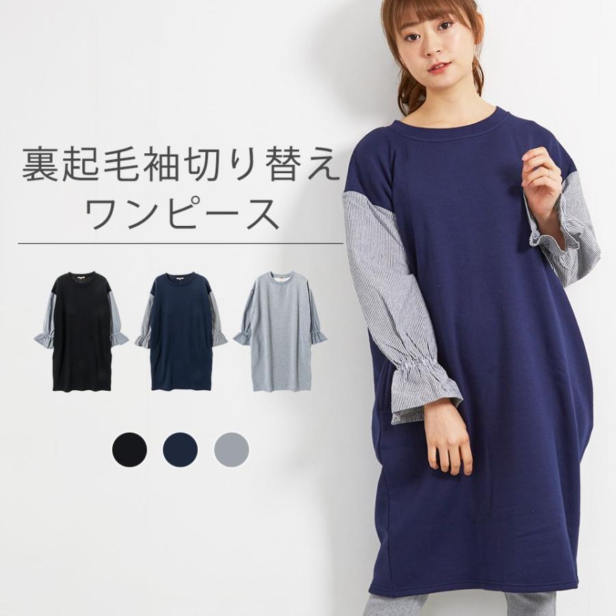 レディース 裏起毛袖切り替え ワンピース 親子 ペアルック お揃い トレーナー 春 秋 冬 裏起毛 暖かい 32121a ninaetlina 通販 yahoo ショッピング