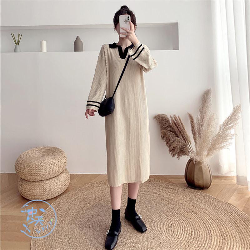 楽チンなのに上品に見える 襟付きニットワンピース 襟付き ニットワンピース ロング
