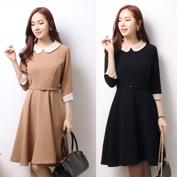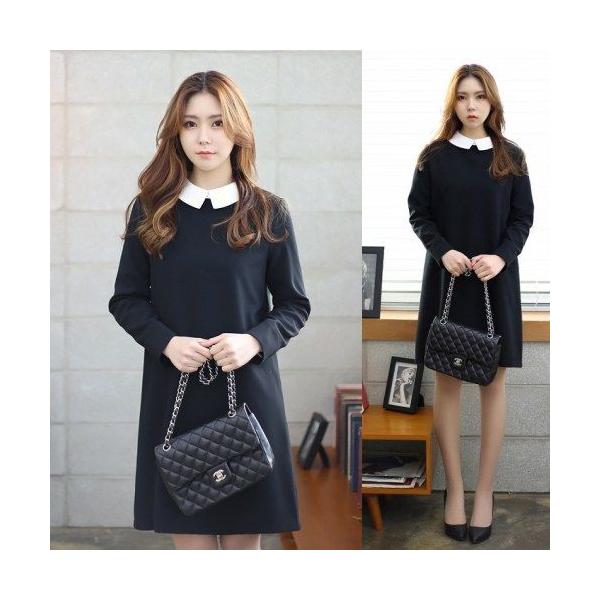 qoo10 襟付きワンピース 丸襟 ワンピース 長袖 レディース服