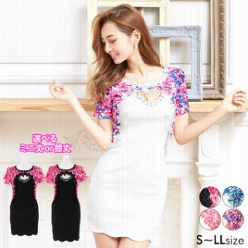 キャバ ドレス 谷間 魅せ 花柄 刺繍 ホワイト レイヤード 風 袖 付 タイト ミニ ドレス ドレス ワンピース ミニドレス セクシー ナイト