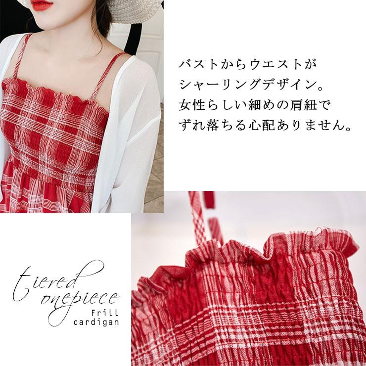 大きいサイズ レディース チェック柄ワンピース ティアードワンピ 赤 シフォンカーディガン ll 3l 4l 5l 6l レッド 2019年 夏 新入荷 ネコポス可 1011293 queen