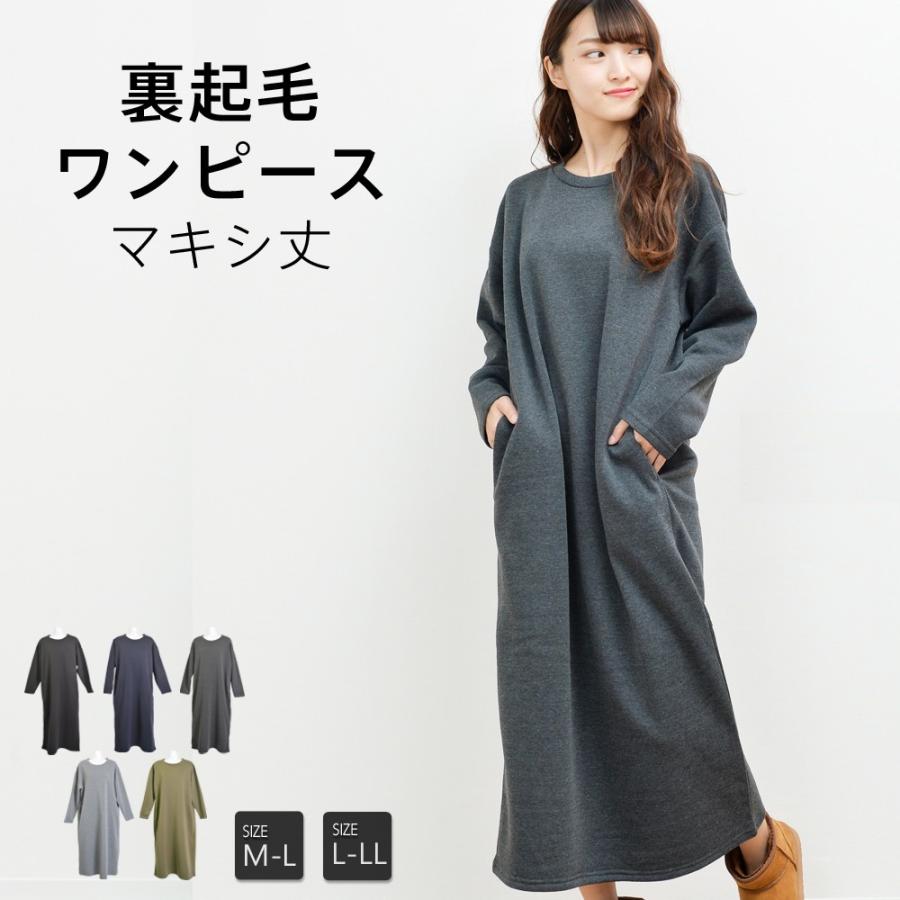 裏起毛 ワンピース レディース ロングワンピース 防寒 フレアワンピース 体型カバー あったか スウェット e2232