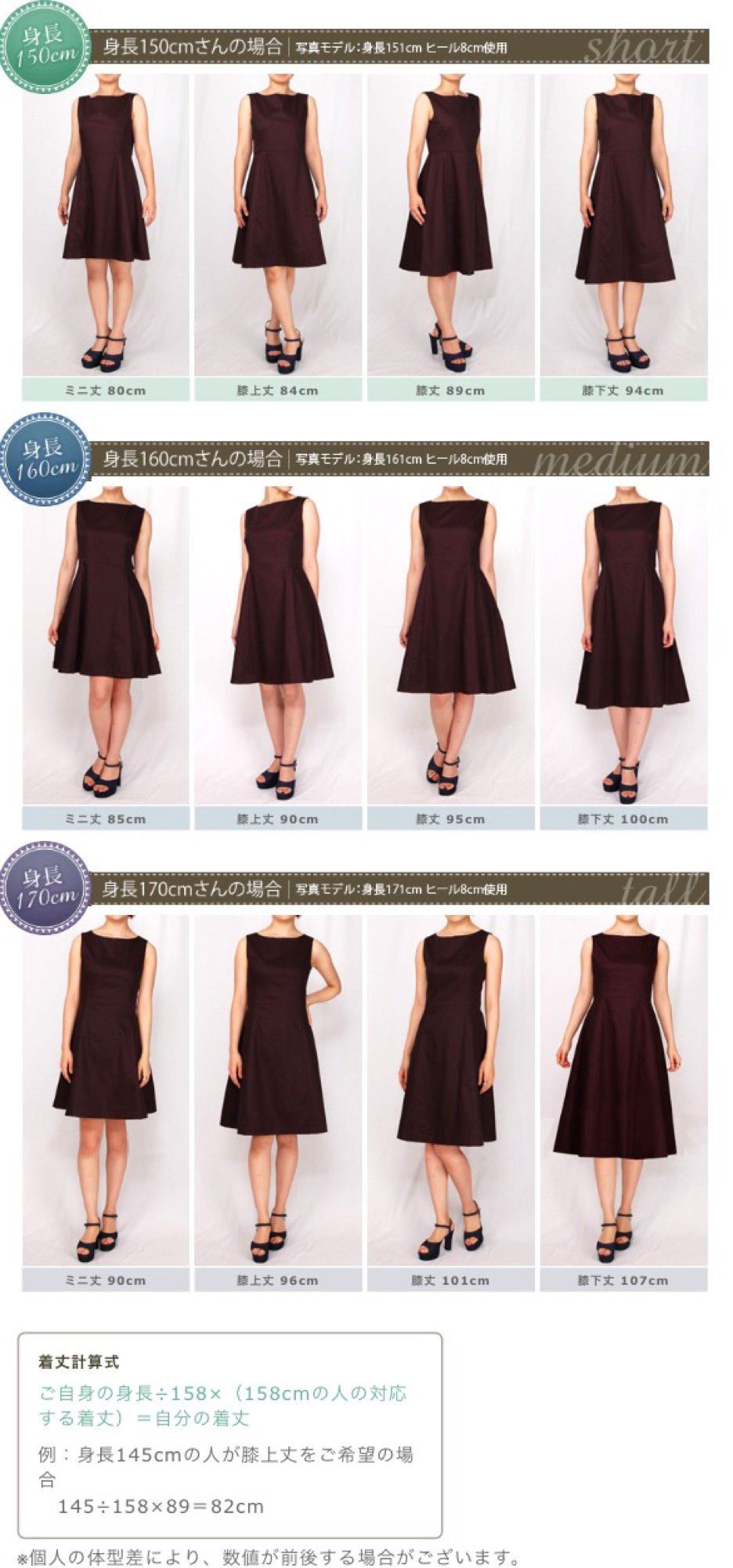 uzivatel くりゅう na twitteru 身長別 ワンピースの着丈比較自分用メモ画像 膝丈のワンピースかわいいと思っても モデルさんが身長150cmだったら 私が着たらミニ丈になるトラップの正体