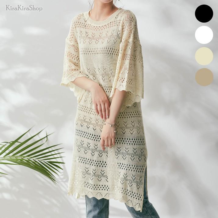 レディース 透かし編みワンピース レースワンピース ニットワンピース かぎ針編み シースルー 透け感 チュニック レイヤード スカラップ フレアスリーブ cot0106 kirakirashop by kg market 通販 yahoo ショッピング