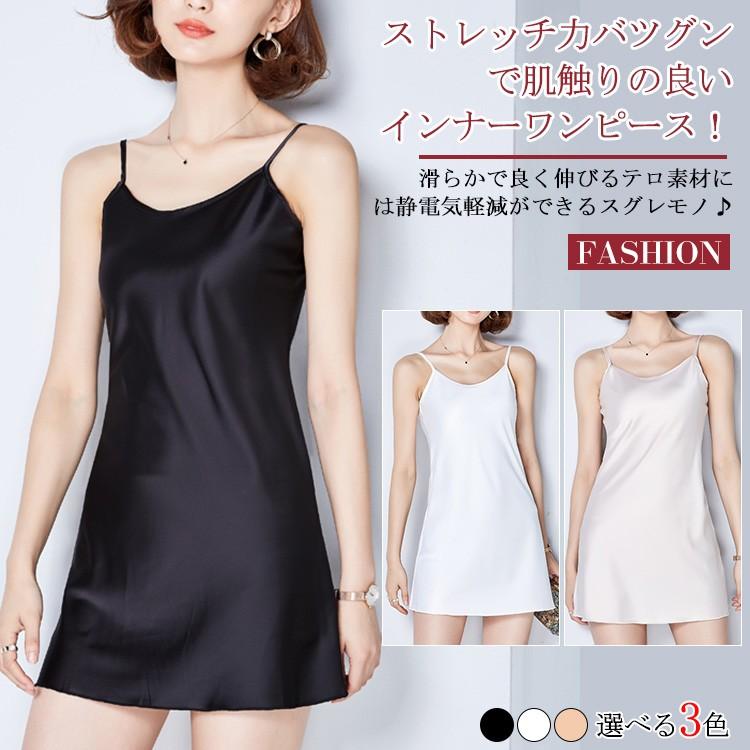 インナー レディース サテン風 インナー キャミソール ワンピース gina 透け防止 下着 肌着 キャミワンピ キャミソール 春 夏 秋 冬 ミディアム丈