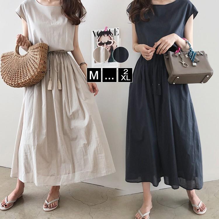 ワンピース レディース 夏 フレア 半袖 ロング丈 韓国風 きれいめ リボン オシャレ カジュアル ゆったり vネック 通勤ワンピース 2色 y491554 fairyhouse 通販 yahoo ショッピング