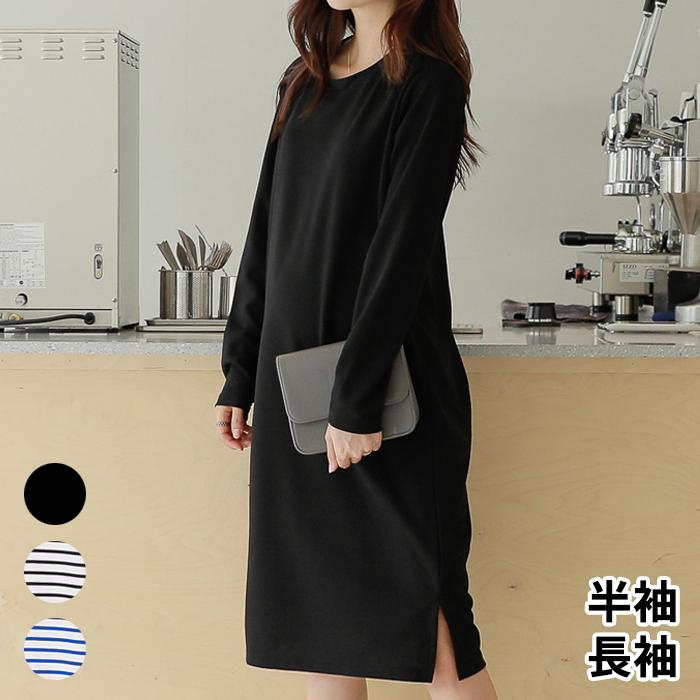 ルームウェア パジャマ 部屋着 ワンピース ラウンドネック ゆったり 大きいサイズ カジュアル シンプル 春夏 街角のカフェテラス powered by base