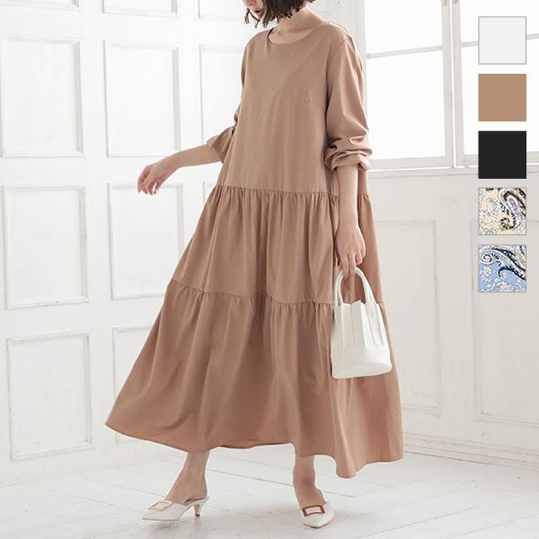 ワンピース 長袖 春 ティアード マキシワンピース 春 夏 ボリューム袖 ペイズリー 体型カバー マキシ丈 e2380