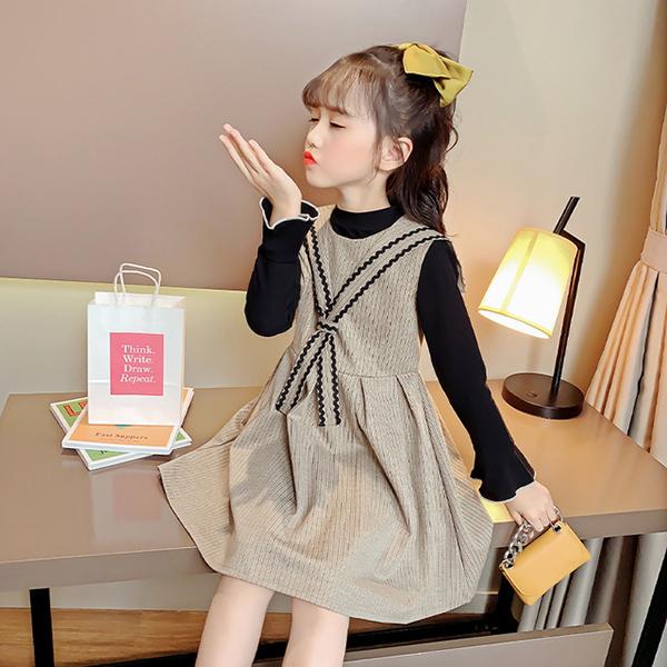 amazon 女の子 長袖 ワンピース 子供服 ドレス oネック キッズ服 プリンセススカート ガールズ 膝上丈 ミニドレス かわいい 通園 通学 春夏 2色 100 150cm ワンピース チュニック 通販