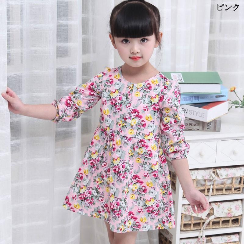 秋新作 キッズ 花柄 長袖 ワンピース 可愛い 長袖ワンピース フラワー 洋服 綿100 子供服 女の子 可愛い aラインワンピース 子供用 ガールズ buyee 日本代购平台 产品购物网站大全 buyee一站式代购 bot online