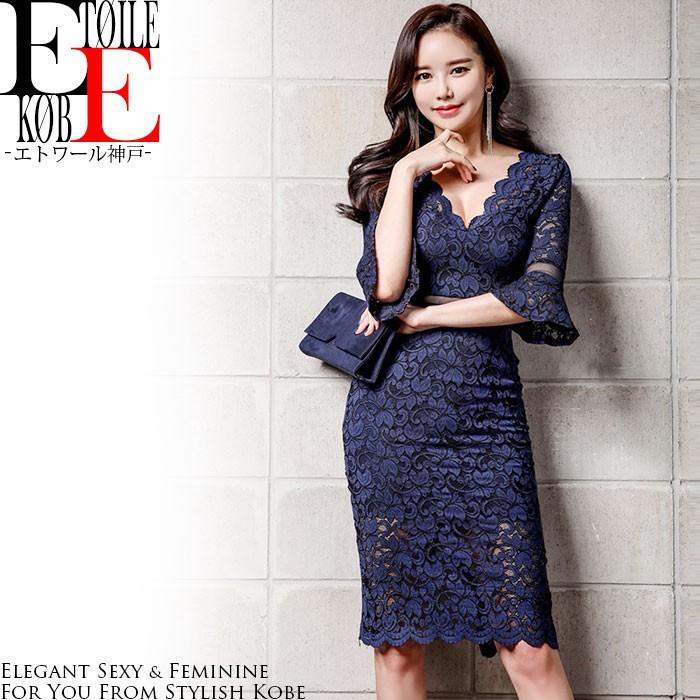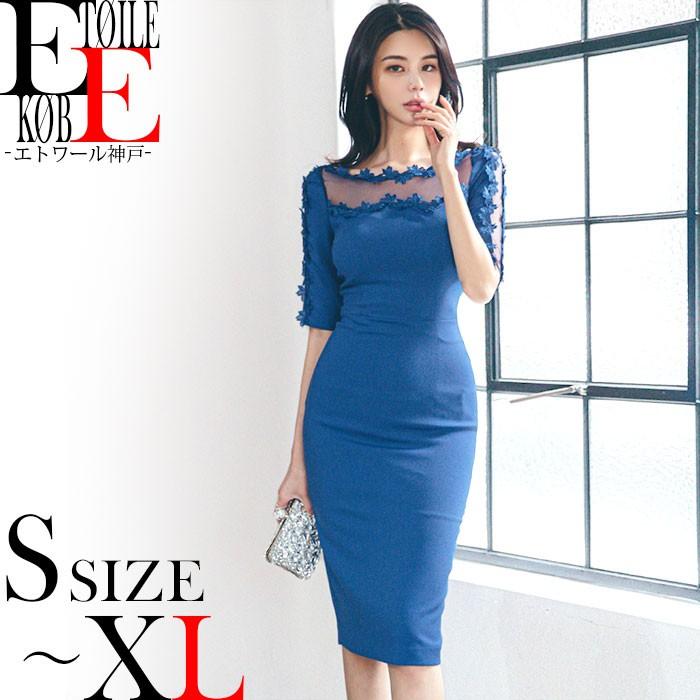 ワンピース セクシー シースルー レース 大きめ 五分袖 5分袖 膝丈 タイトワンピ 韓国 レディース 青 ネイビー 春 春夏 おしゃれ エトワール神戸 g08ks3 7040 エトワール神戸 通販 yahoo ショッピング