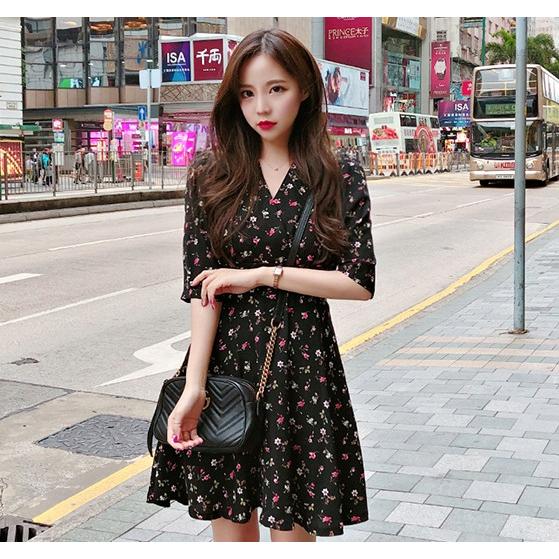 韓国ファッション ワンピース 花柄 レディース オルチャン シャツ ワンピ 五分丈 半袖 夏 tb 331 毒いちご 通販 yahoo ショッピング