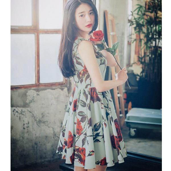 韓国 オルチャン ワンピース 大きな花柄 aライン フレアワンピース 花柄 ひざ丈 ワンピース 可愛い au pay マーケット
