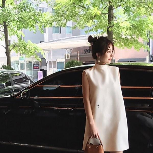 web限定値下げ メール便不可 バックリボンスタンドカラーノースリーブワンピースcocaオリジナル 石田一帆さん着用 ハイネック aライン フレア 無地 19ss コカ 26 180308000 01