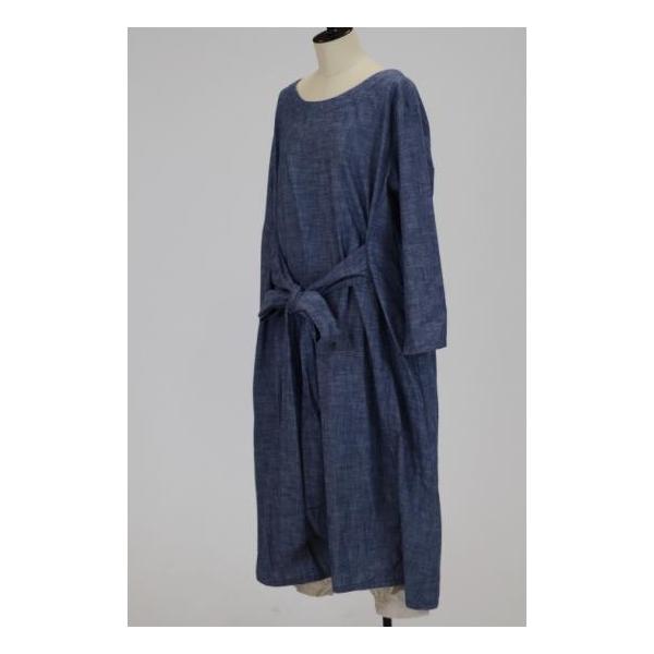 tresorオンラインストア blue in green ブルーイングリーン 高城染工 リネン vネック ワンピース キナリ フレア 2400012277687