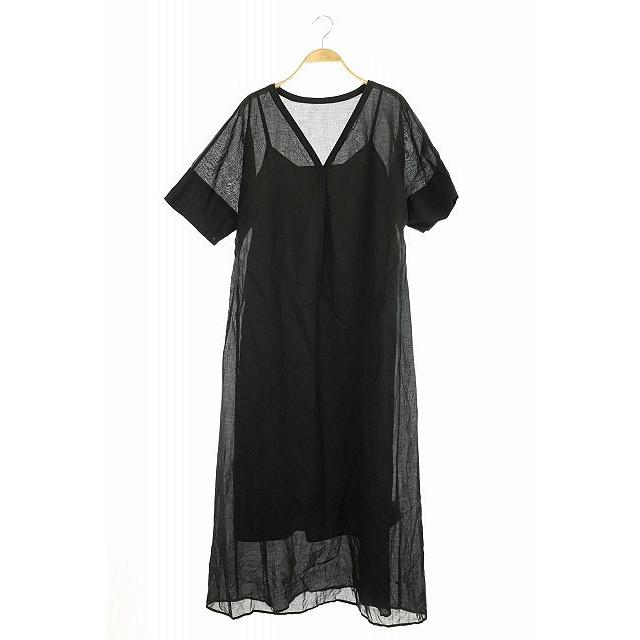 フレームワーク framework 高山 都 19ss ワンピース シャツワンピ ロング 半袖 キャミソール付き 38 黒 ブラック es os レディース