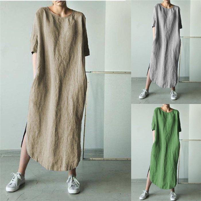 ナチュラルaライン半袖綿麻ワンピース 春夏 リネン ロングワンピメール便のみ送料無料1