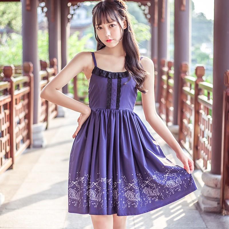 ロリータファッション 黒レースシースルーワンピース 紫ノースリーブワンピース セットアップレース 透け感 星座柄 清楚 黒ロリ ゴスロリ ロリータドレス ロリータゴスロリ専門通販ショップluxury ラグジュアリー 安い価格で可愛いロリータワンピースを取り揃えています