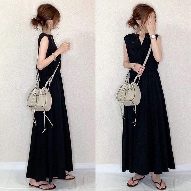 黒ノースリーブワンピースの人気おすすめレディースコーデ20選 おしゃれレイヤード lamire ラミレ