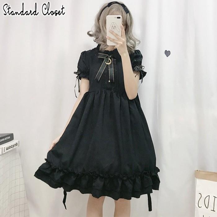 膝丈ワンピース 黒 かわいい ゴシック的な宮廷の洋服 ワンピース 黒ワンピース ロリータファッション ワンピース