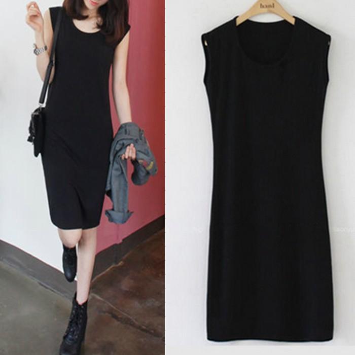 cawaii カワイイ の シンプルタンクトップワンピース 黒 ノースリーブワンピース ロングワンピース ワンピース wear