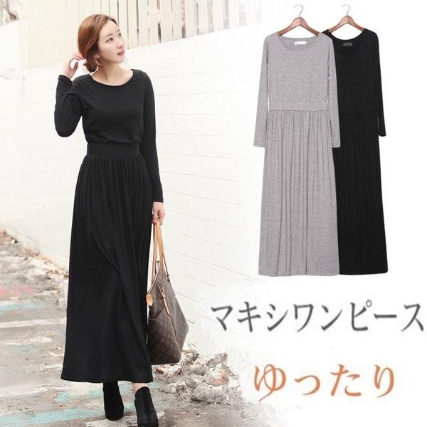 マキシワンピ 秋 レディース 黒ワンピース ゆったり マキシワンピース レディース ワンピース ロング ゆるっとワンピース マキシ丈 体型