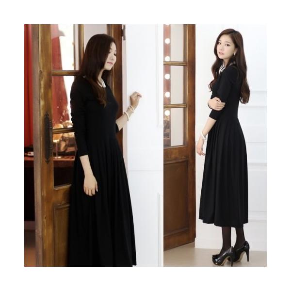 春新作ワンピース 春のワンピース 長袖ワンピース 黒ワンピース 膝下ワンピース aラインワンピース 大きいサイズ 体型カバー ワンピース au pay マーケット