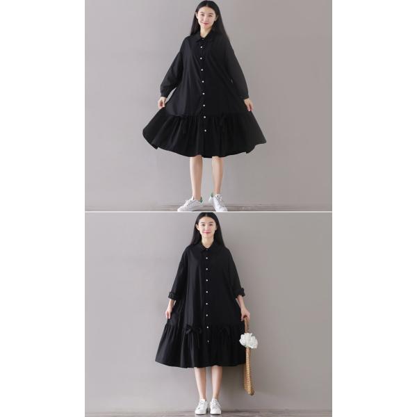 ドットワンピースレトロ長袖レディースワンピ春おしゃれ可愛いかわいい黒ブラック大人カジュアルファッションフレアロングマキシ buyee servis zakupok tretim licom buyee pokupajte iz yaponii